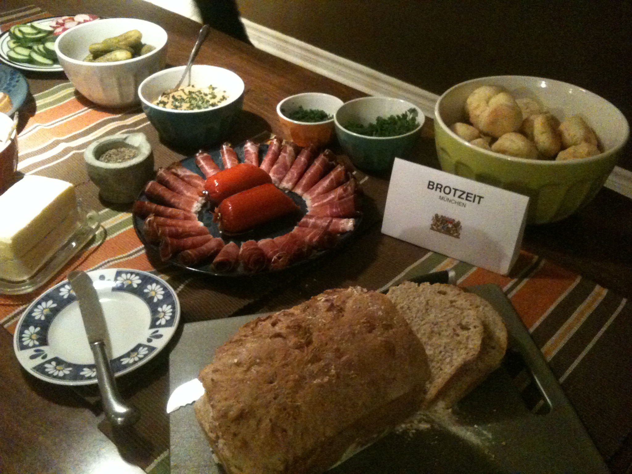 Zum Anlass unserer Geburtstage haben wir Ende November eine kleine Feier in unserer Wohnung organisiert. Unter dem Motto „German Brotzeit“ haben wir für unsere Gäste Fingerfood aus verschiedenen Teilen unserer Heimat zubereitet. Das hier gab es auf dem Buffettisch: