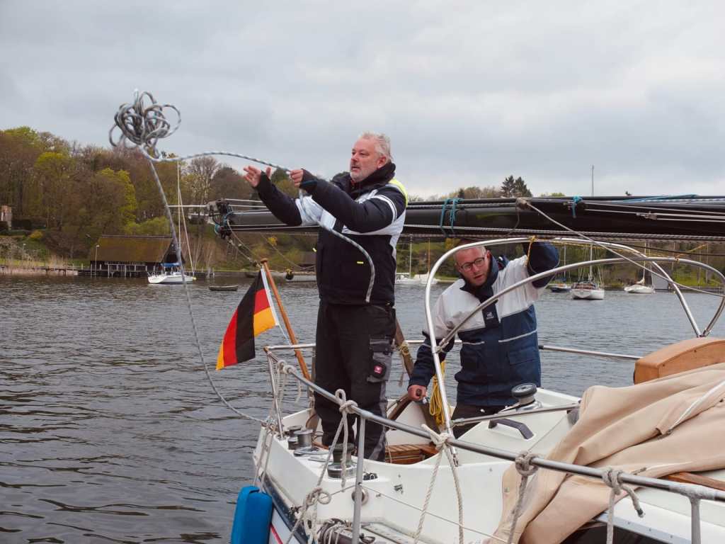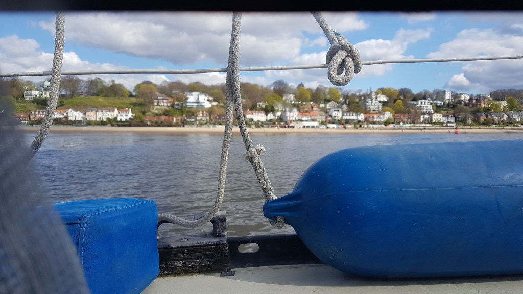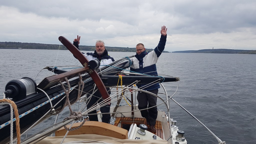 Im April 2021 war es dann soweit. Das Schiff kam ins Wasser, der Mast wurde probehalber gestellt und ein erster Schlag auf der Elbe wurde unternommen. Ca. 2 Wochen später sind wir mit zwei Freunden aus unserem Segelverein nach Finkenwerder gefahren und haben uns auf den Weg nach Berlin gemacht.
